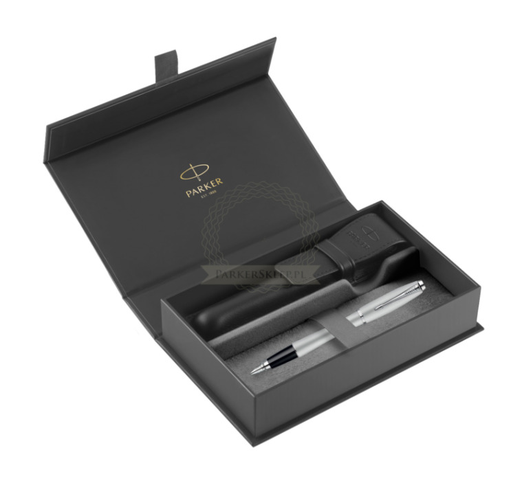 W zestawie Pióro, eleganckie firmowe pudełko Parker, gwarancja, startowy wkład(kolor wkładu dodawany losowo)