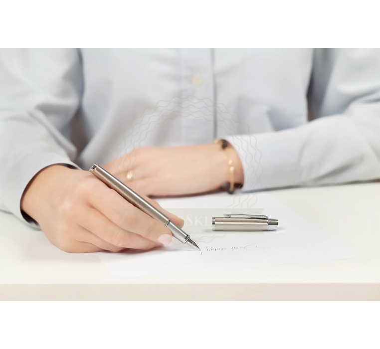 Solidny, mosiężny korpus ze szczotkowanego metalu. Pokryty lakierem w kolorze szampańskim. Wykończenia chromowane. Pióro wieczne wyposażone w stalówkę z wysokiej jakości nierdzewnej stali typu M.