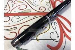 Mosiężny korpus ze szczotkowanego metalu pokryty laką w odcieniu głębokiej czerni. Wykończenia chromowane. Wyposażone w standardowy wkład Parker do pióra kulkowego.