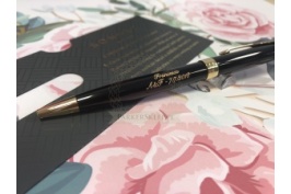 Kunsztownie wykonane, pokryte czarnym błyszczącym lakierem oraz klipem i pierścieniami wykończonymi złotem.