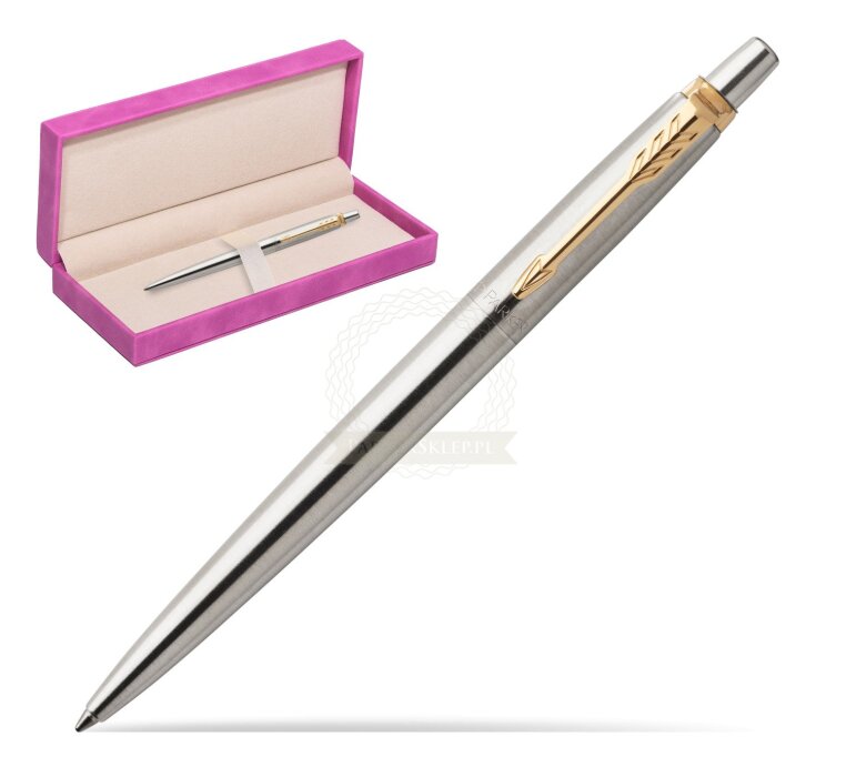 Długopis Parker Jotter Stal Matowa GT w pudełku zamszowym fuksja