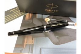 Gustowne pióro wieczne Parker Urban łączy prostotę matowego czarnego koloru z wyrafinowanym kształtem oraz chromowanymi wykończeniami. Czarny błyszczący lakier i polerowane wykończenia pierścieni podkreślają wysoką jakość produktu. Pierścienie wykonane są ze stali nierdzewnej, wykończenia chromowane. Korpus i nasadka wykonane z mosiądzu lakierowane czarnym lakierem. Sekcja przednia wykonana z czarnego tworzywa sztucznego i polerowana. Pióro wieczne wyposażone w stalówkę z wysokiej jakości stali nierdzewnej. W piórze można korzystać z nabojów lub z tłoczka napełnianego atramentem (tłoczek nie dołączony). UWAGA: Wkład do pióra jest pod spodem dna pudełka. W opakowaniu prezentowym Parker