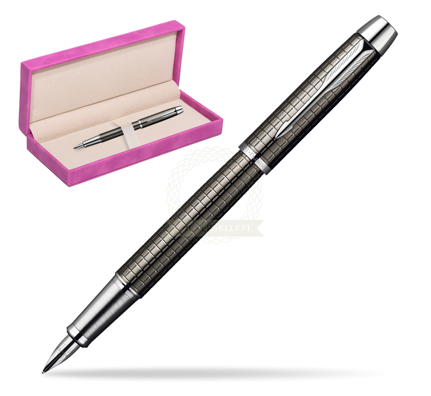 Pióro wieczne Parker IM PREMIUM Gun Metal CT w różowym pudełku zamszowym