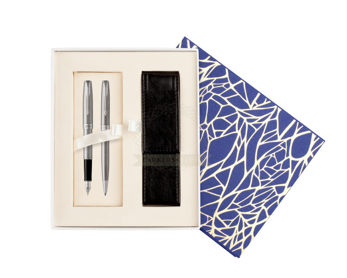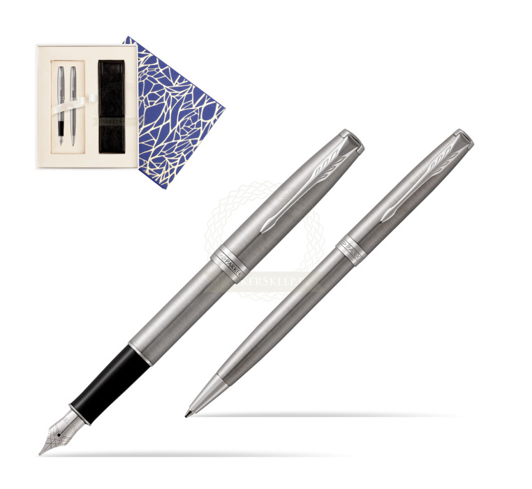 Zestaw prezentowy Parker pióro wieczne + długopis Sonnet Stalowy CT w pudełku Uniwersalne z etui (1931509_1931512_S0108W)