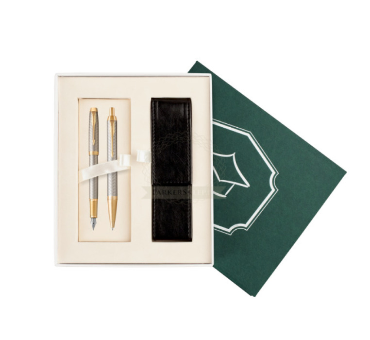 Zestaw Prezentowy Parker Pióro wieczne + Długopis IM Premium Warm Silver GT w pudełku Wiedza i Nauka (1931684_1931687_S0100N)
