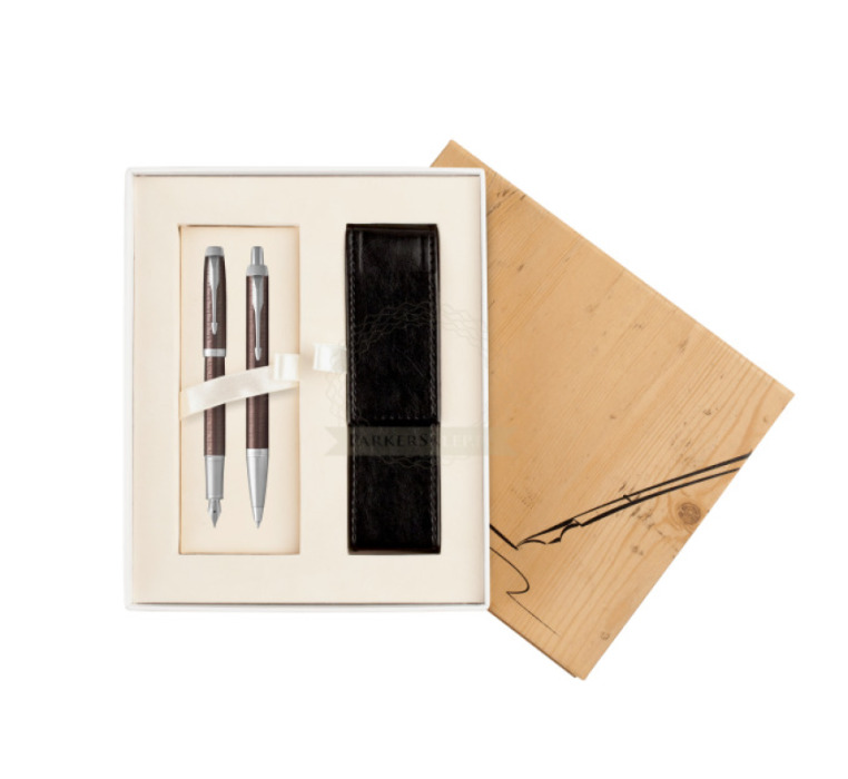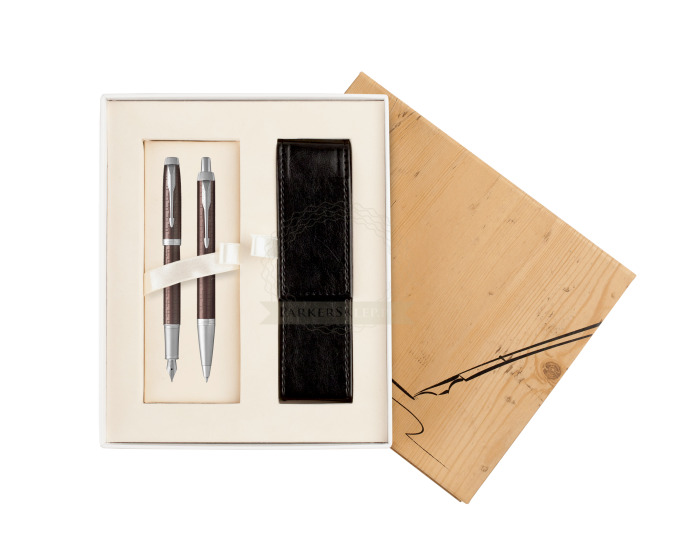 Zestaw Prezentowy Parker Pióro wieczne + Długopis IM Premium Brązowy CT w pudełku Jubileusz 2 (1931676_1931679_S0107UP)