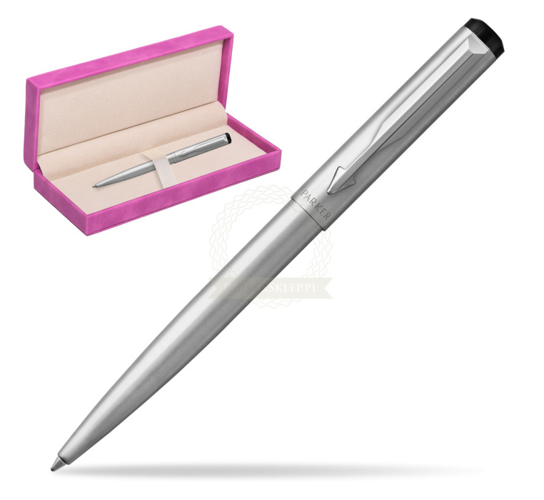 Długopis Parker Vector Stalowy w różowym pudełku zamszowym