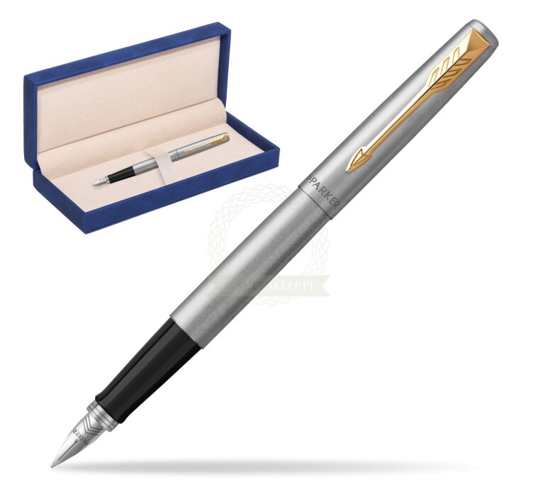 Pióro wieczne Parker Jotter Stal Matowa GT w granatowym pudełku zamszowym