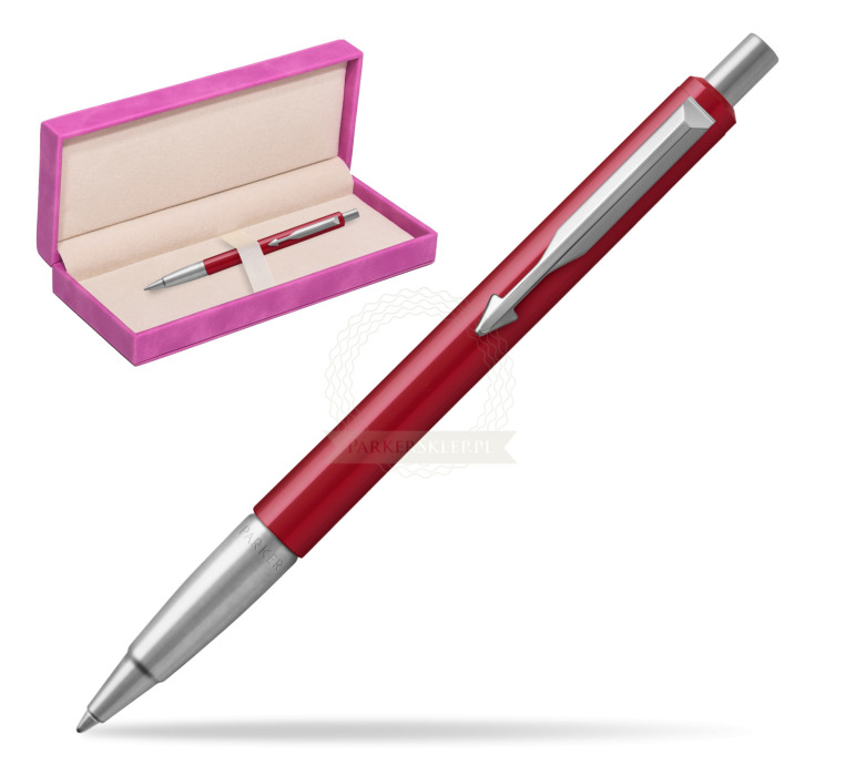 Długopis Parker Vector Czerwony CT 2018 w pudełku zamszowym fuksja (2025453_165FUCH)