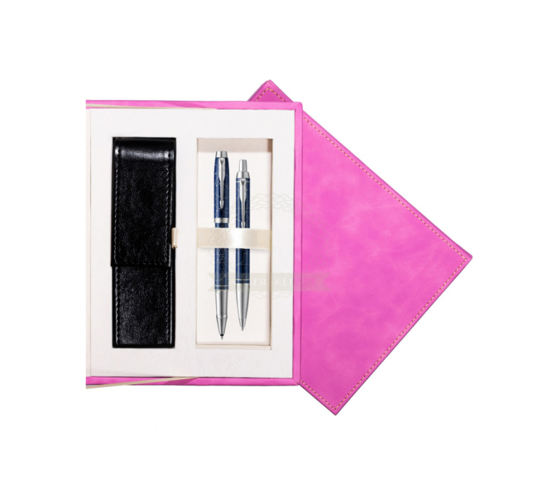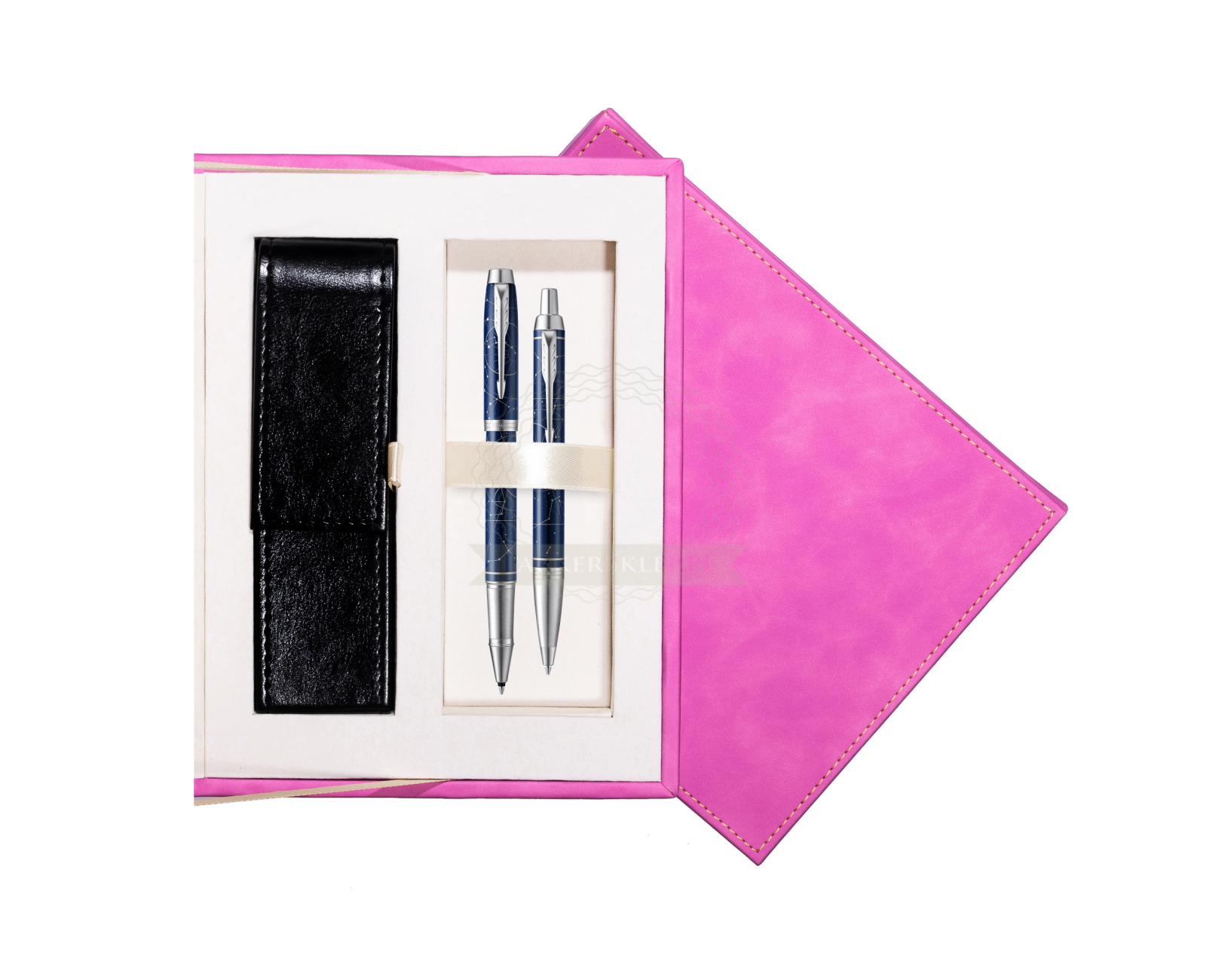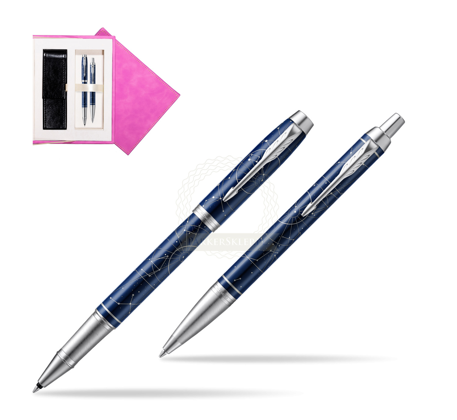 Zestaw prezentowy Parker pióro kulkowe + długopis IM Midnight Astral Edycja Specjalna w różowym pudełku zamszowym