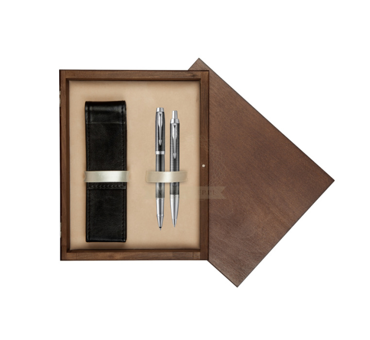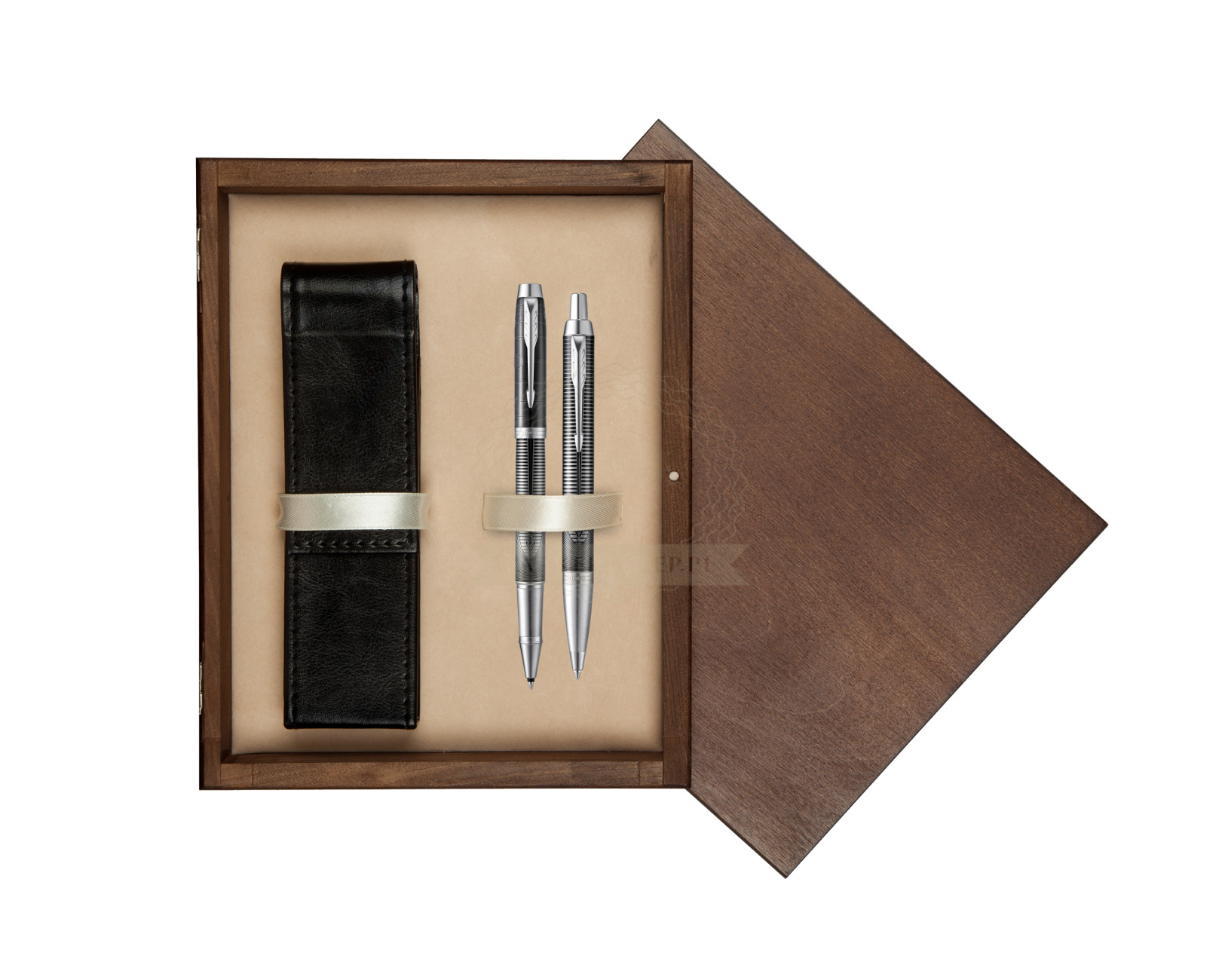Zestaw prezentowy Parker pióro kulkowe + długopis IM Metallic Pursuit Edycja Specjalna w pudełku drewnianym Mahoń Double Bordo