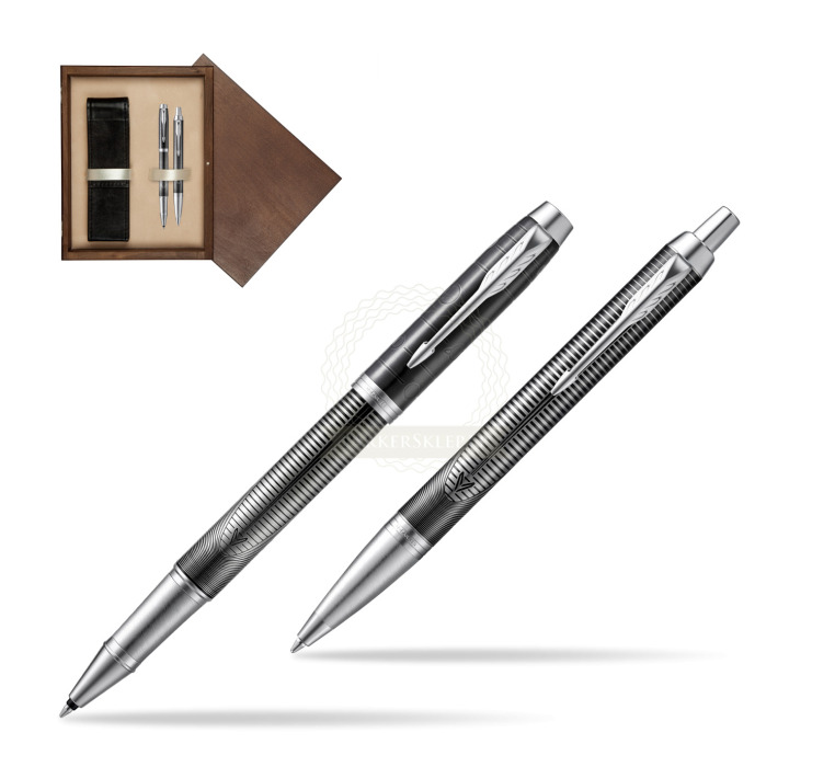 Zestaw prezentowy Parker pióro kulkowe + długopis IM Metallic Pursuit Edycja Specjalna w pudełku drewnianym Czerń Double Ecru
