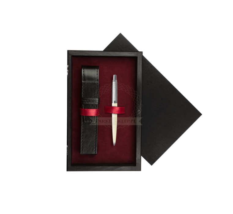 Długopis Parker Jotter Ecru w pudełku drewnianym Czerń Single Bordo (S0946000_C1B)