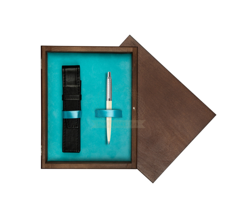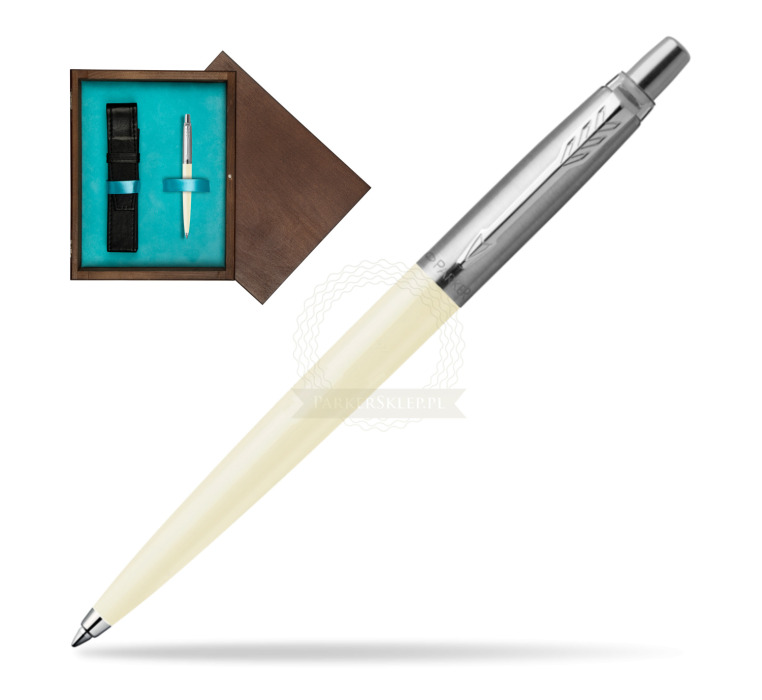 Długopis Parker Jotter Ecru w pudełku drewnianym Wenge Single Turkus (S0946000_W1T)