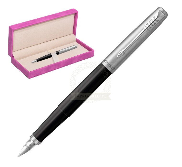 Profil korpusu pióra wiecznego jest dopasowany do estetyki długopisów Jotter, można stworzyć zestaw. Zaokrąglone elementy wykończenia dają wrażenie subtelności. Stalówka zdobiona grafiką z 3 strzałkami.