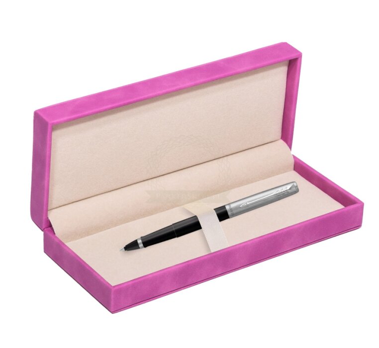 Zapakowany w pudełko upominkowe Parker. To pióro kulkowe jest dostarczane z jednym wkładem w losowym kolorze niebieskim lub czarnym.