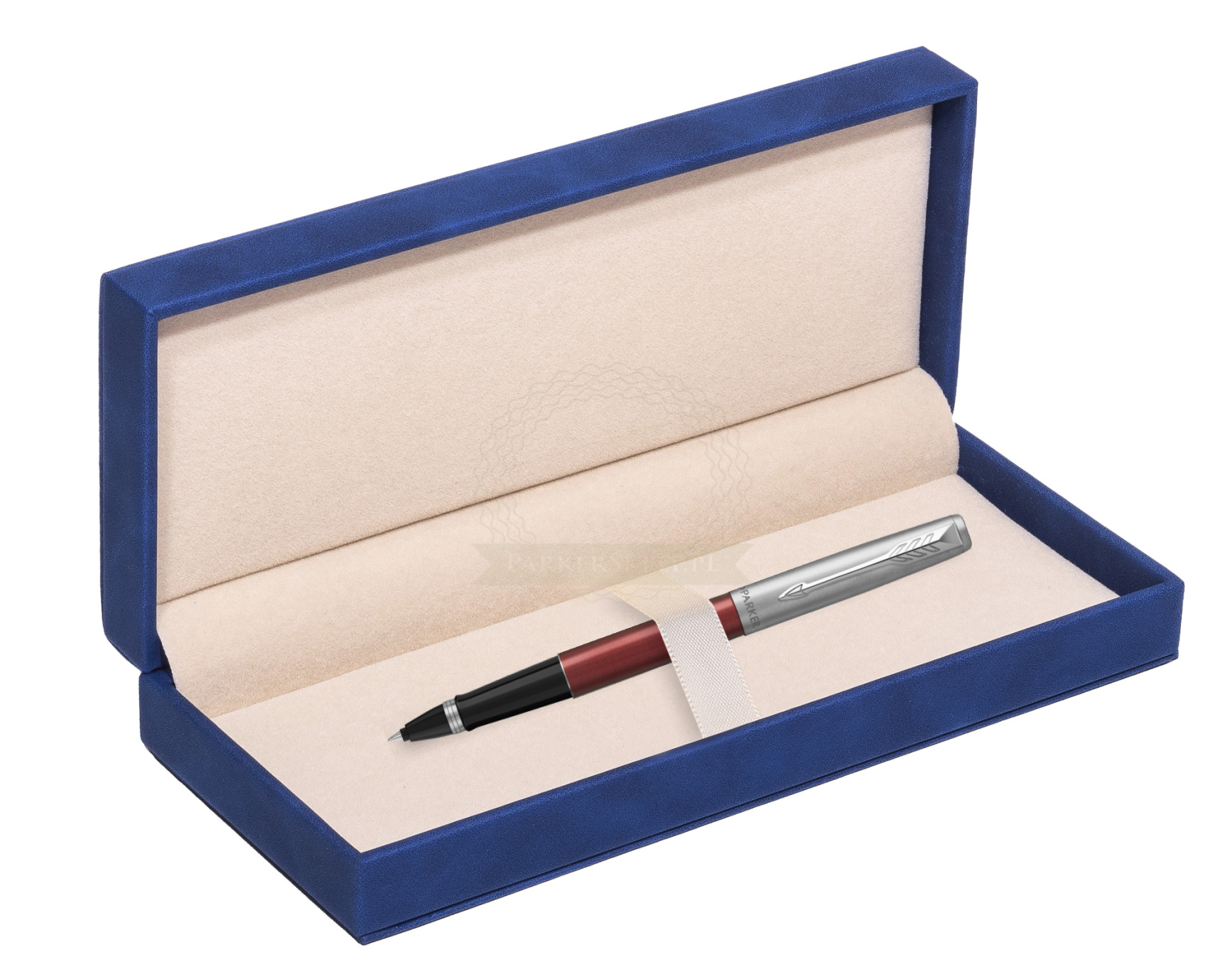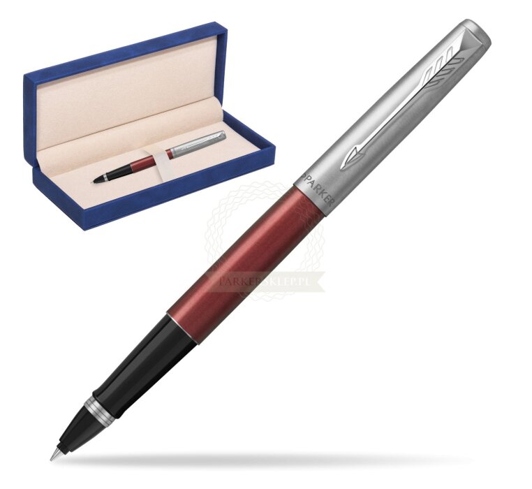 Zapakowany w pudełko upominkowe Parker. To pióro kulkowe jest dostarczane z jednym wkładem w losowym kolorze niebieskim lub czarnym.