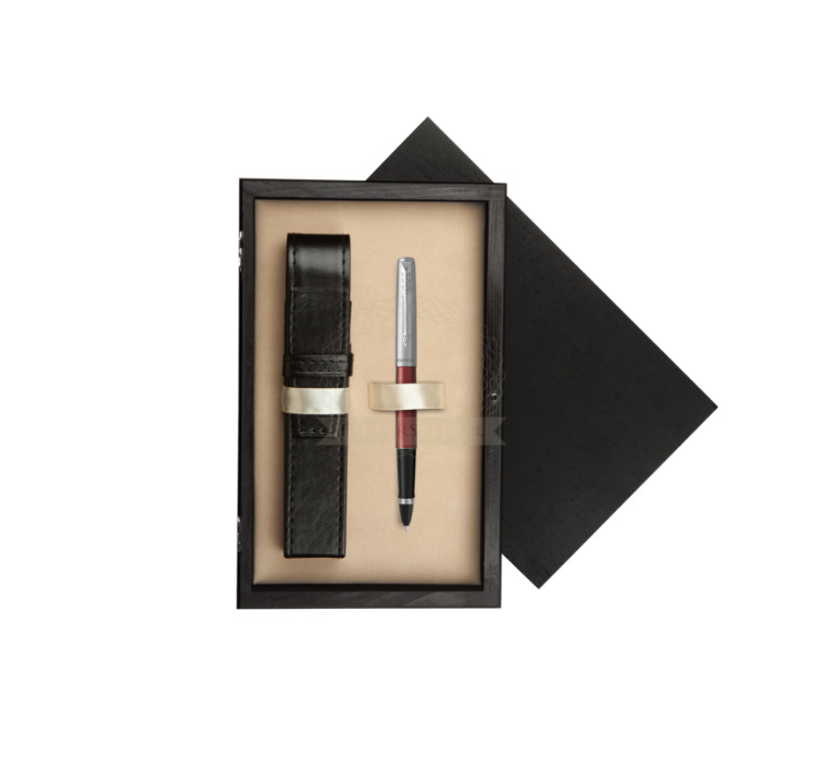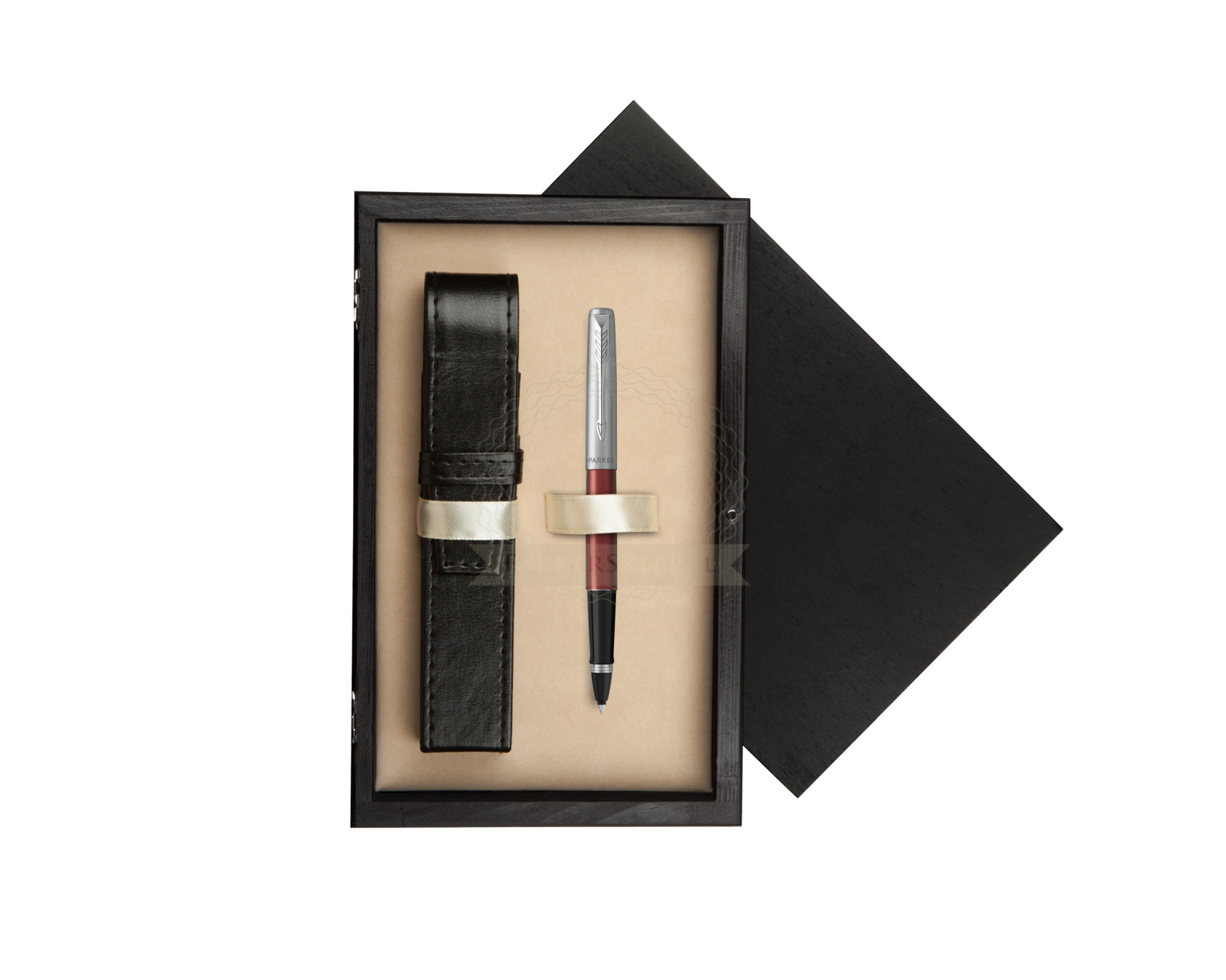 Pióro kulkowe Parker Jotter Kensington Czerwony CT w pudełku drewnianym Czerń Single Ecru (2089229_C1E)