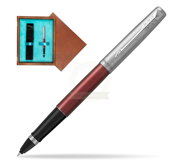 Pióro kulkowe Parker Jotter Kensington Czerwony CT w pudełku drewnianym Mahoń Single Turkus (2089229_M1T)