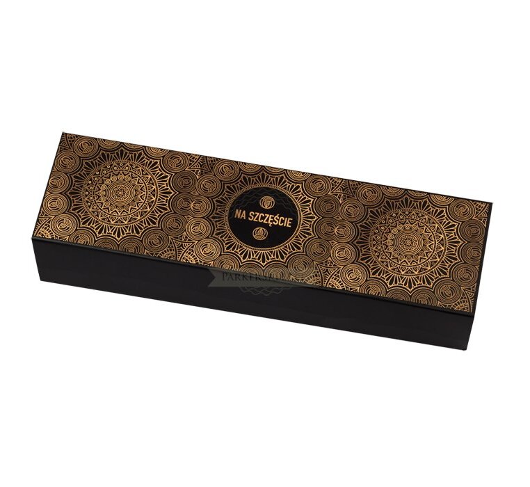 Zapakowany w pudełko upominkowe Parker. To pióro kulkowe jest dostarczane z jednym wkładem w losowym kolorze niebieskim lub czarnym.