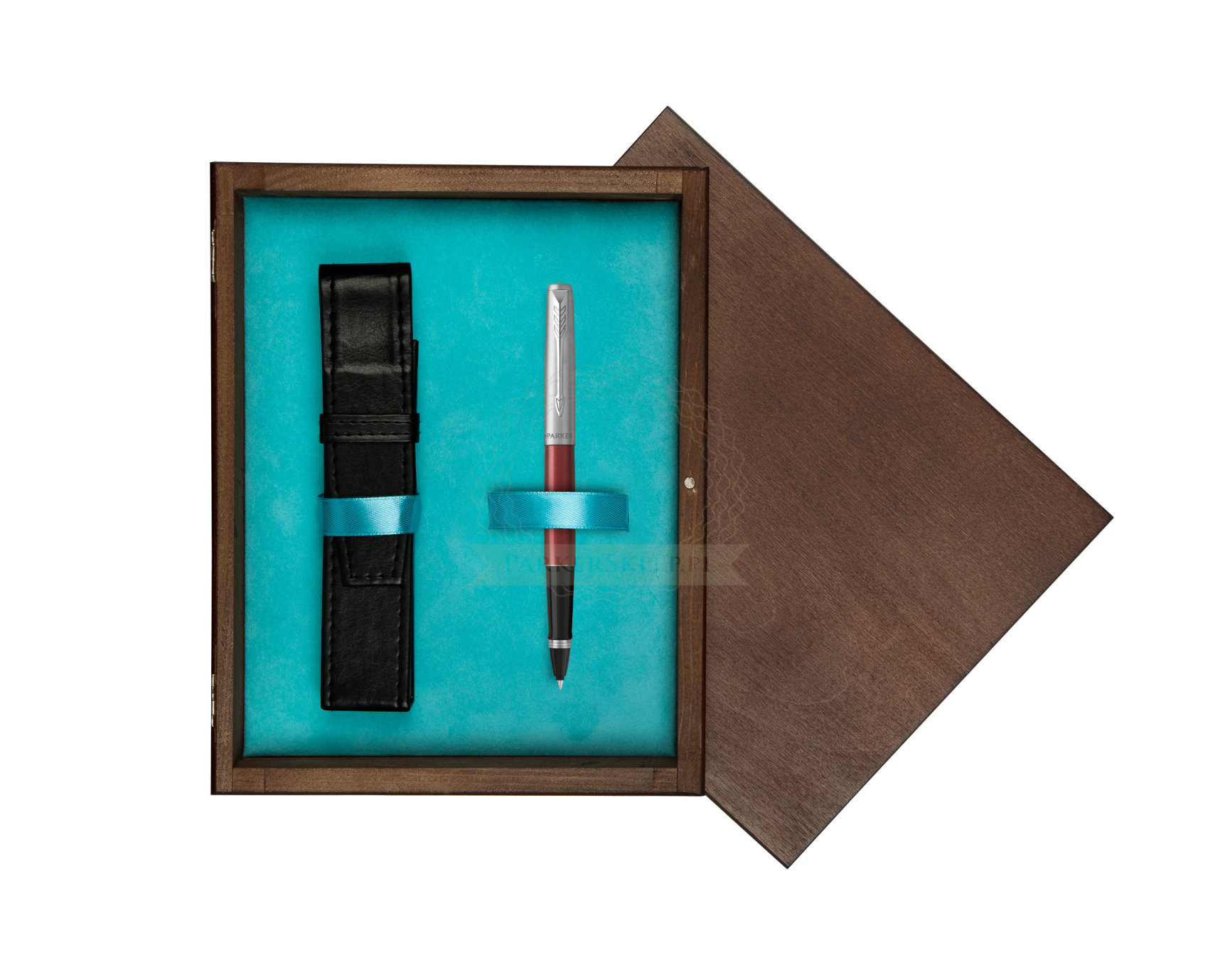Pióro kulkowe Parker Jotter Kensington Czerwony CT w pudełku drewnianym Wenge Single Turkus (2089229_W1T)