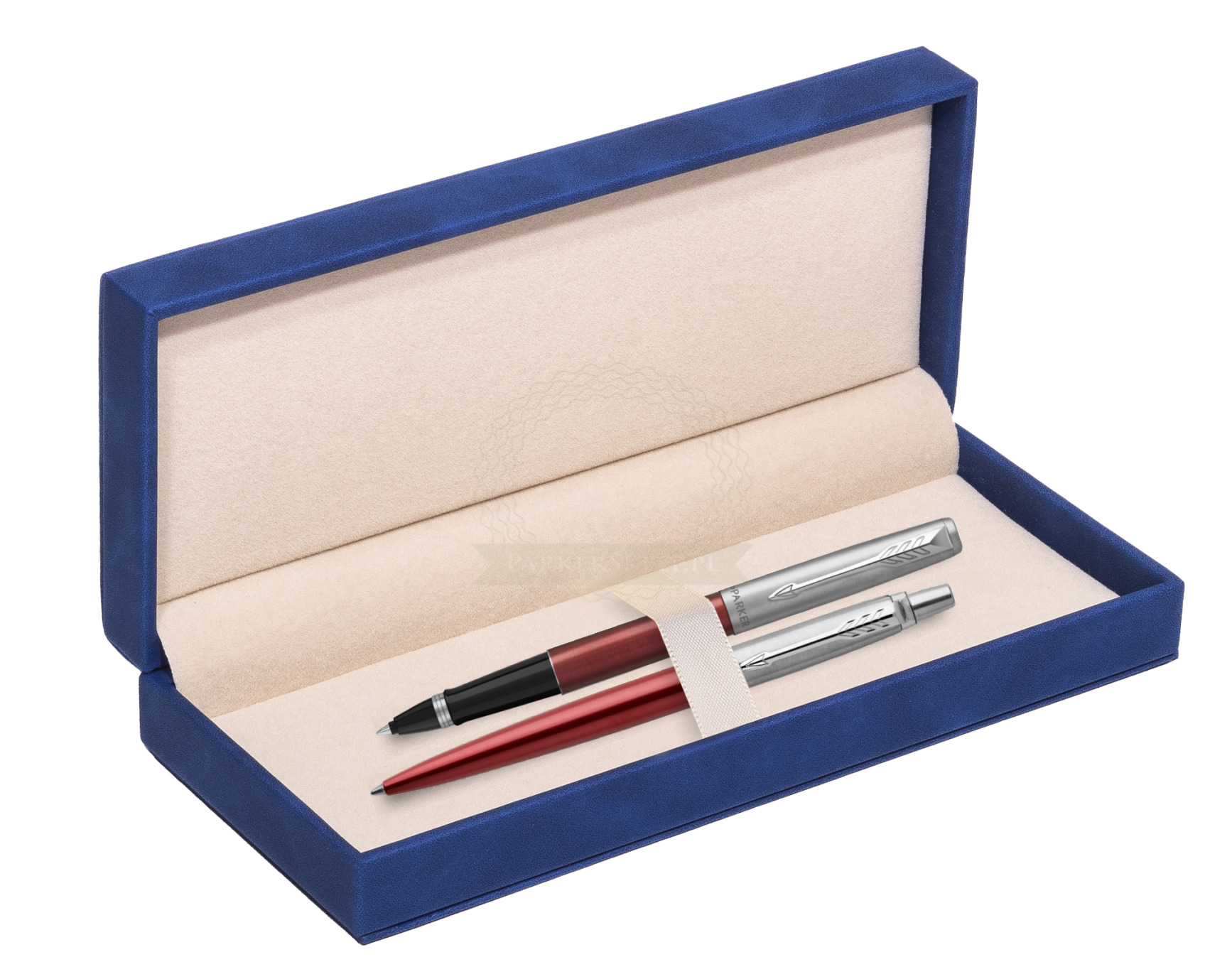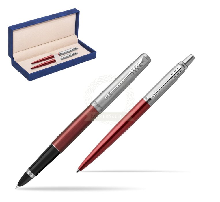 Zestaw Parker Pióro kulkowe + Długopis Jotter Kensington Czerwony CT w granatowym pudełku zamszowym (2089229_1953187_165BLUE)