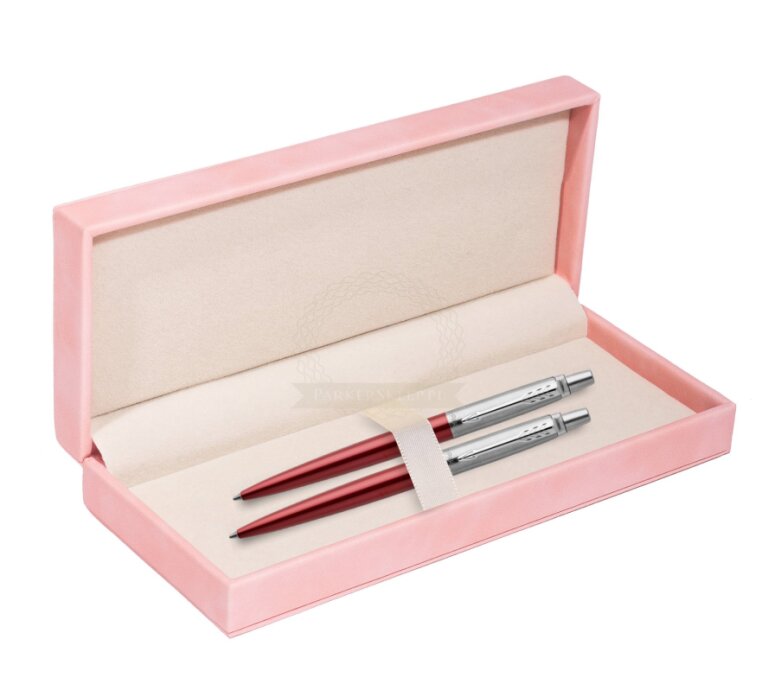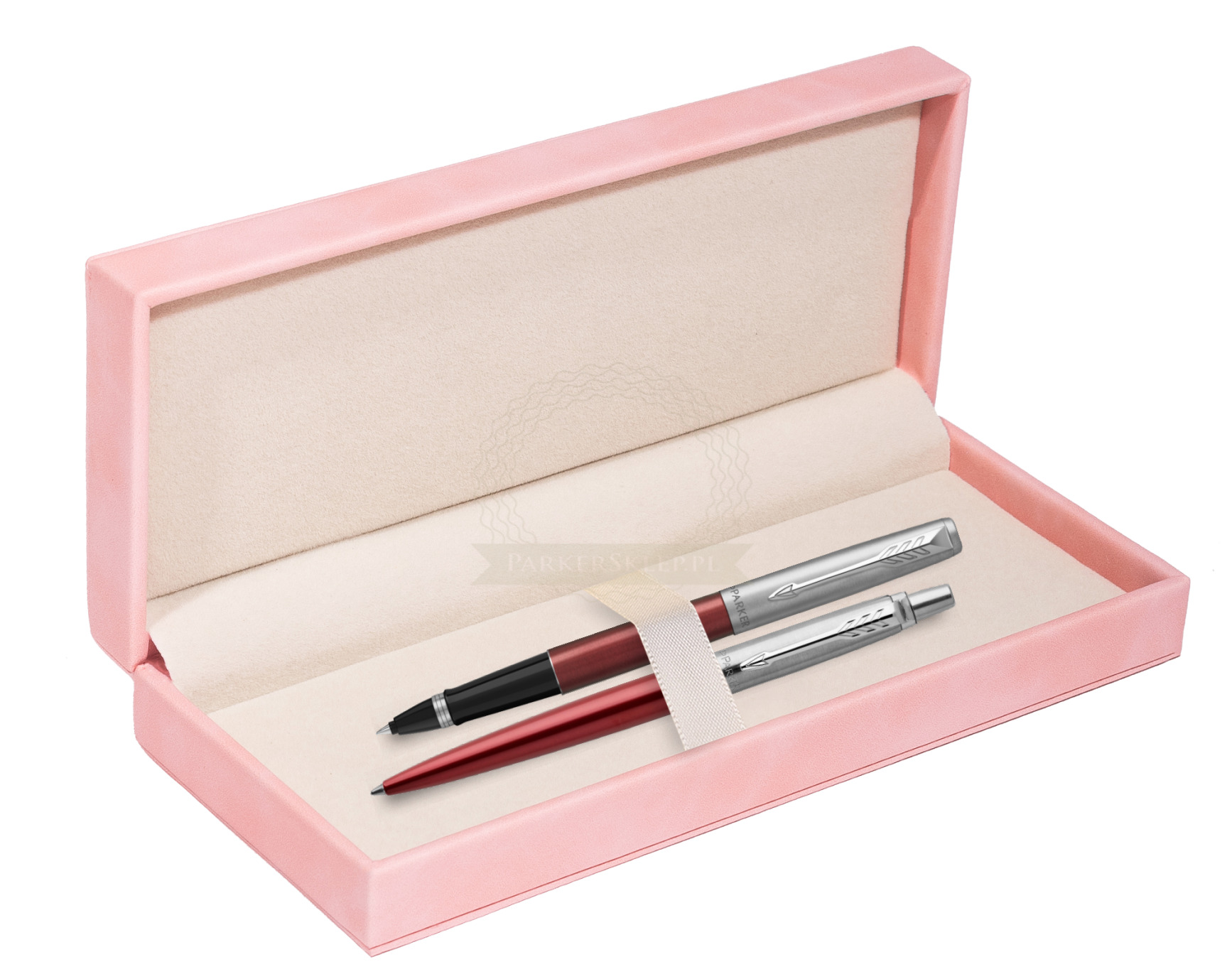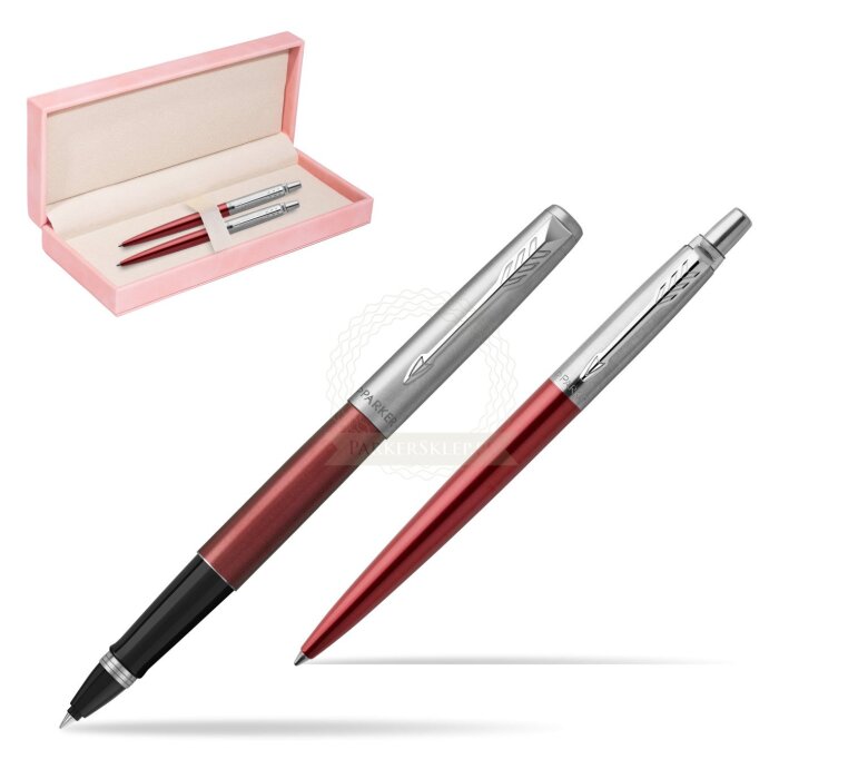 Zestaw Parker Pióro kulkowe + Długopis Jotter Kensington Czerwony CT w różowym pudełku zamszowym (2089229_1953187_165PINK)