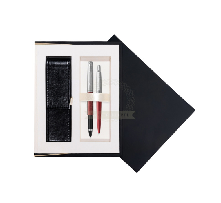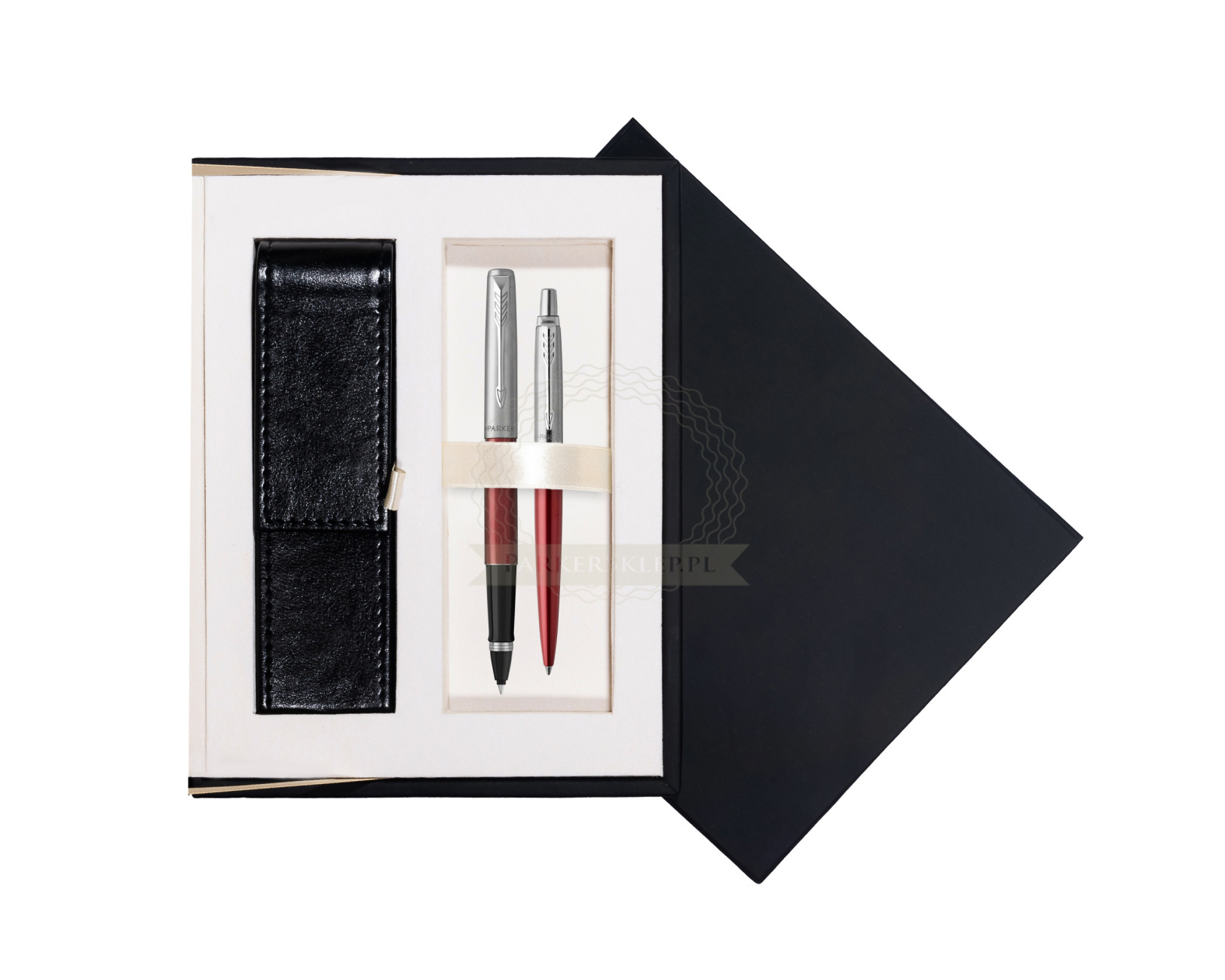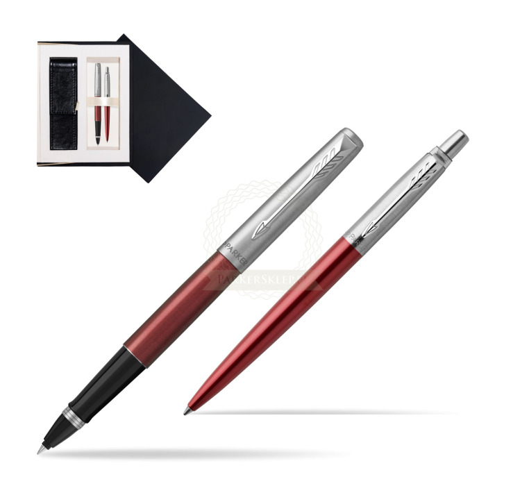 Zestaw Parker Pióro kulkowe + Długopis Jotter Kensington Czerwony CT w czarnym pudełku zamszowym (2089229_1953187_265BLAC)
