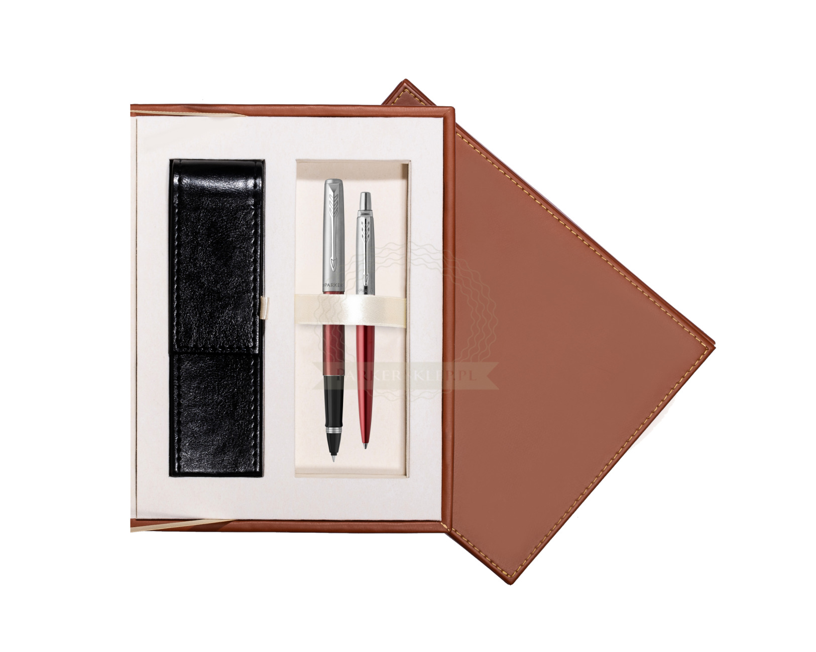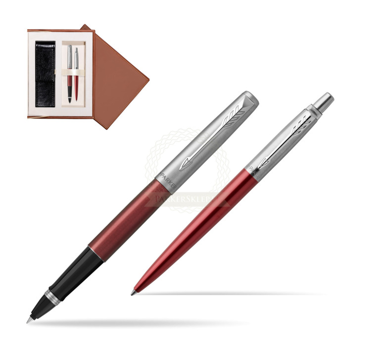 Zestaw Parker Pióro kulkowe + Długopis Jotter Kensington Czerwony CT w brązowym pudełku zamszowym (2089229_1953187_265BROW)