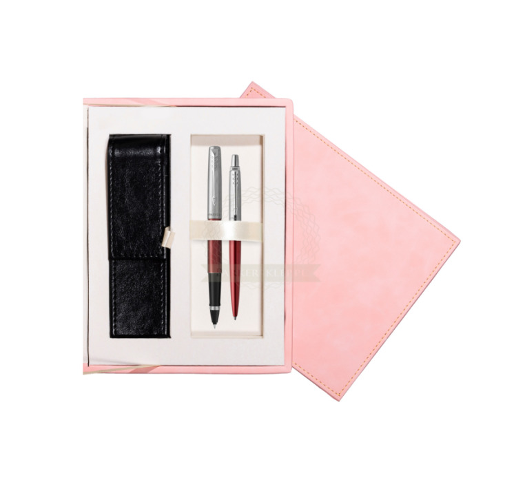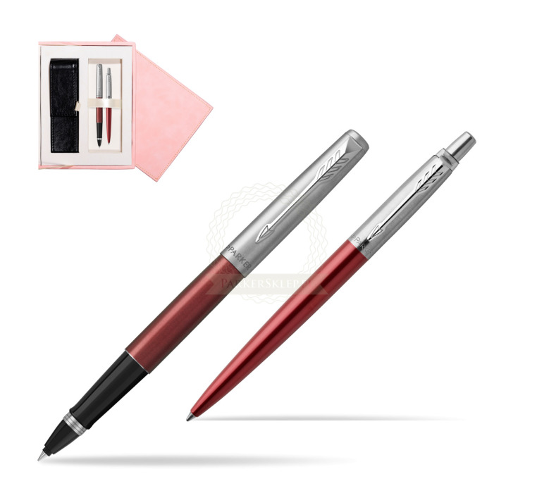 Zestaw Parker Pióro kulkowe + Długopis Jotter Kensington Czerwony CT w różowym pudełku zamszowym (2089229_1953187_265PINK)