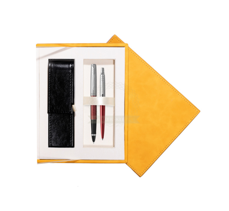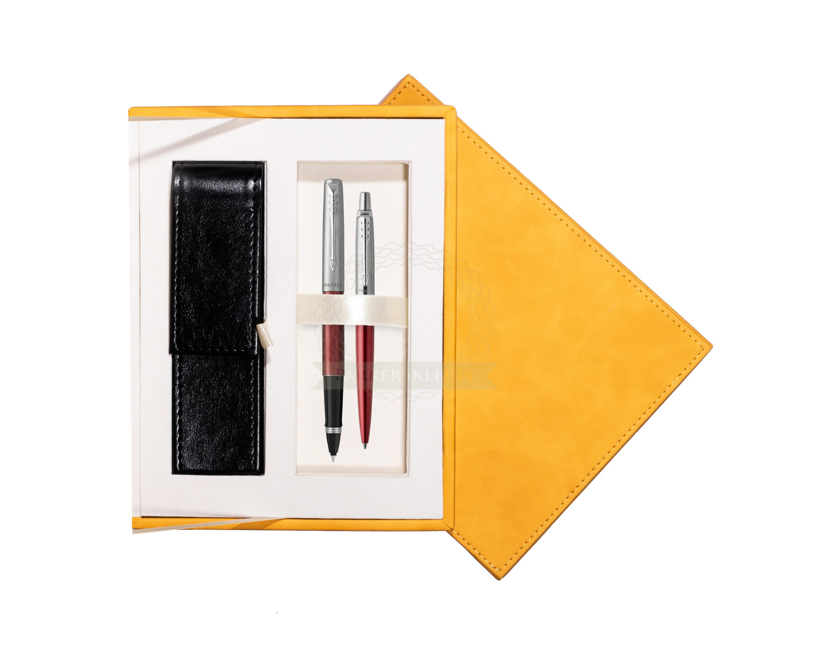Zestaw Parker Pióro kulkowe + Długopis Jotter Kensington Czerwony CT w żółtym pudełku zamszowym (2089229_1953187_265YELL)