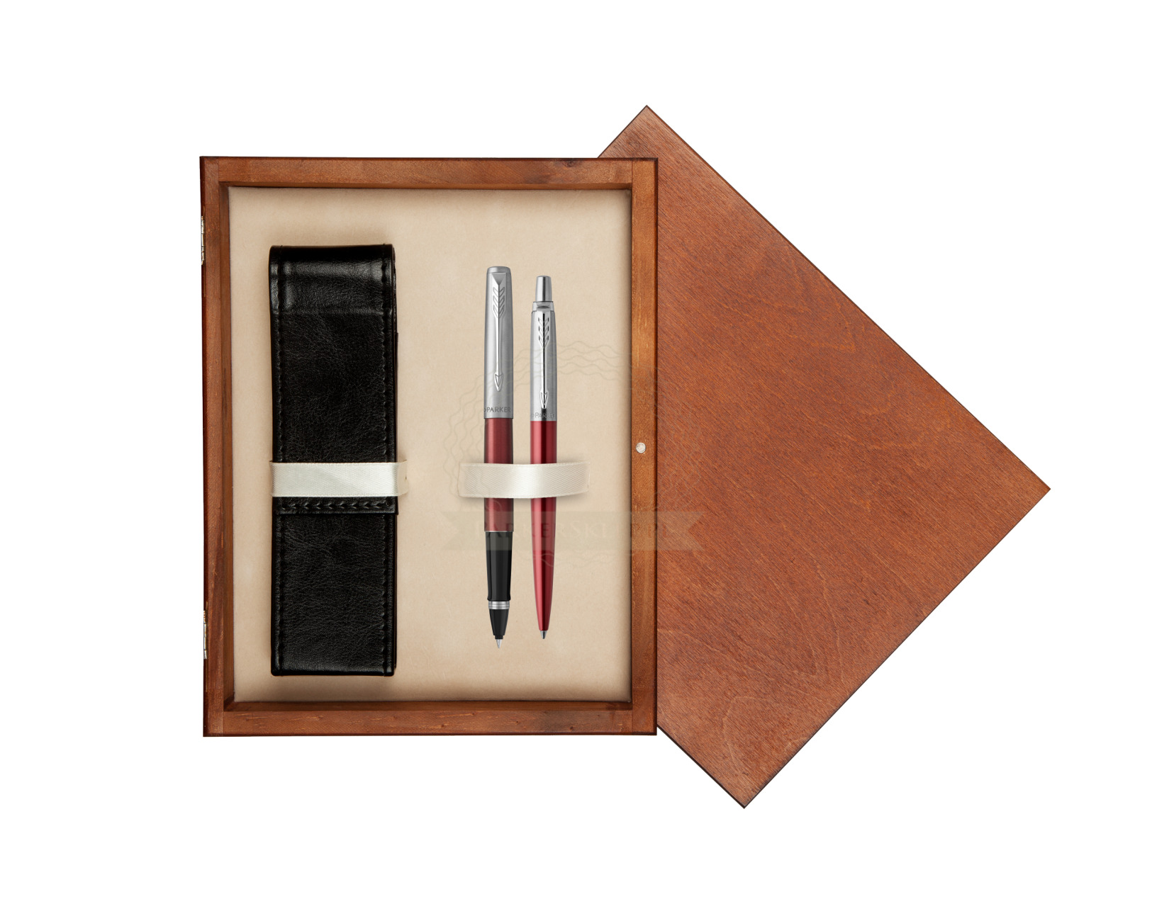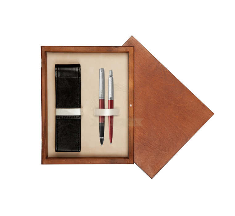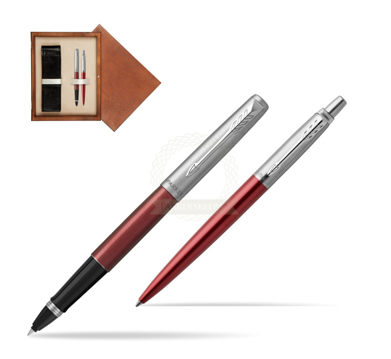 Zestaw Parker Pióro kulkowe + Długopis Jotter Kensington Czerwony CT w pudełku drewnianym Mahoń Double Ecru (2089229_1953187_M2E)