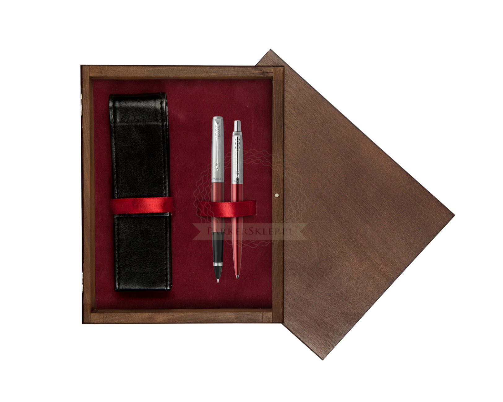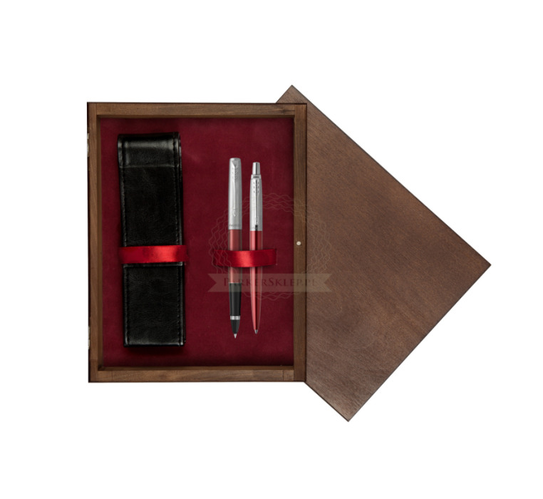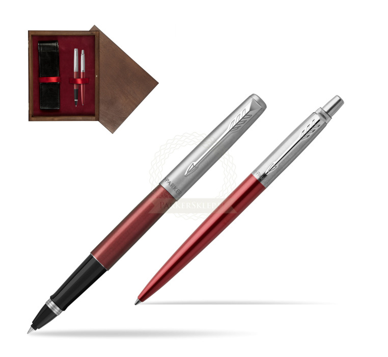 Zestaw Parker Pióro kulkowe + Długopis Jotter Kensington Czerwony CT w pudełku drewnianym Wenge Double Bordo (2089229_1953187_W2B)
