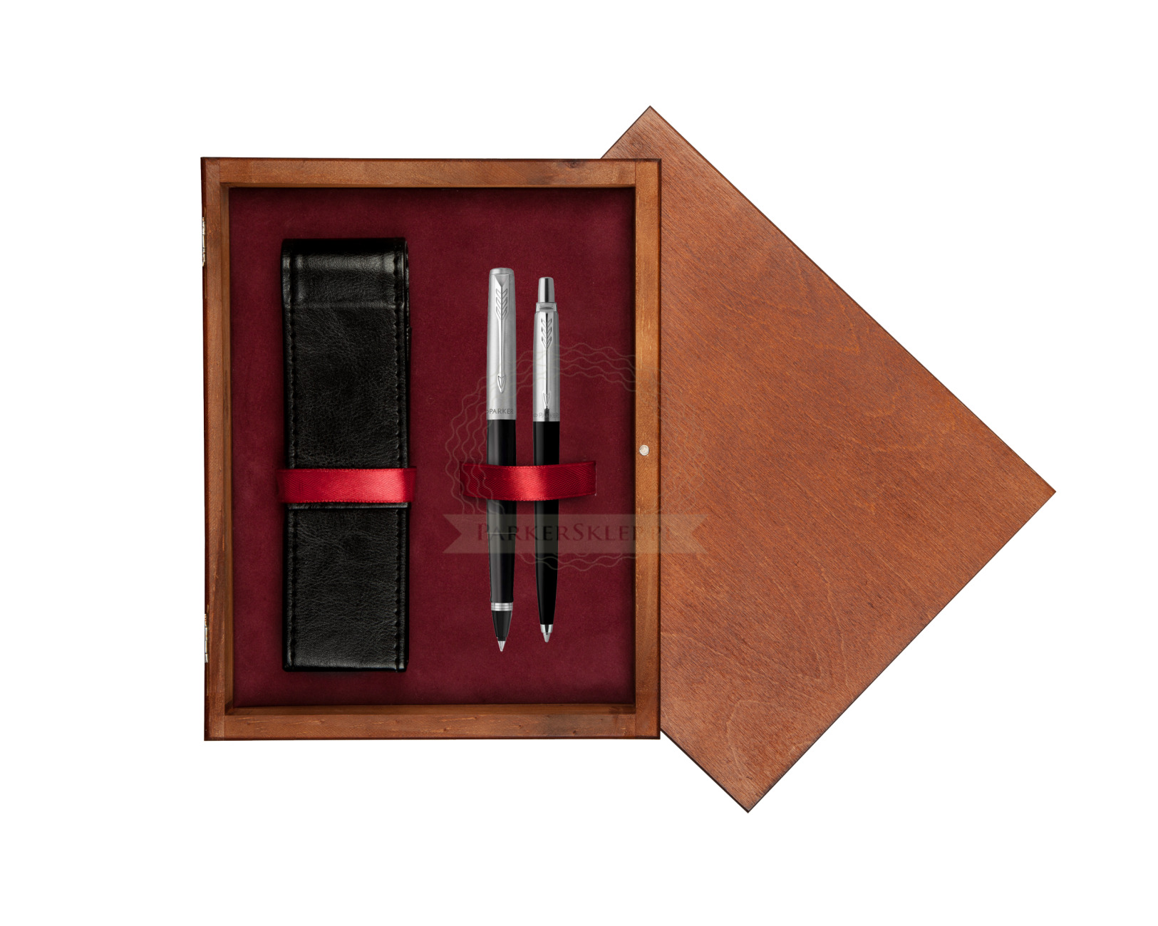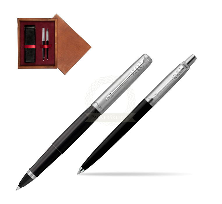Zestaw Prezentowy Parker Pióro Kulkowe + Długopis Jotter Originals Czarny w pudełku drewnianym Mahoń Double Bordo (2096886_2096873_M2B)