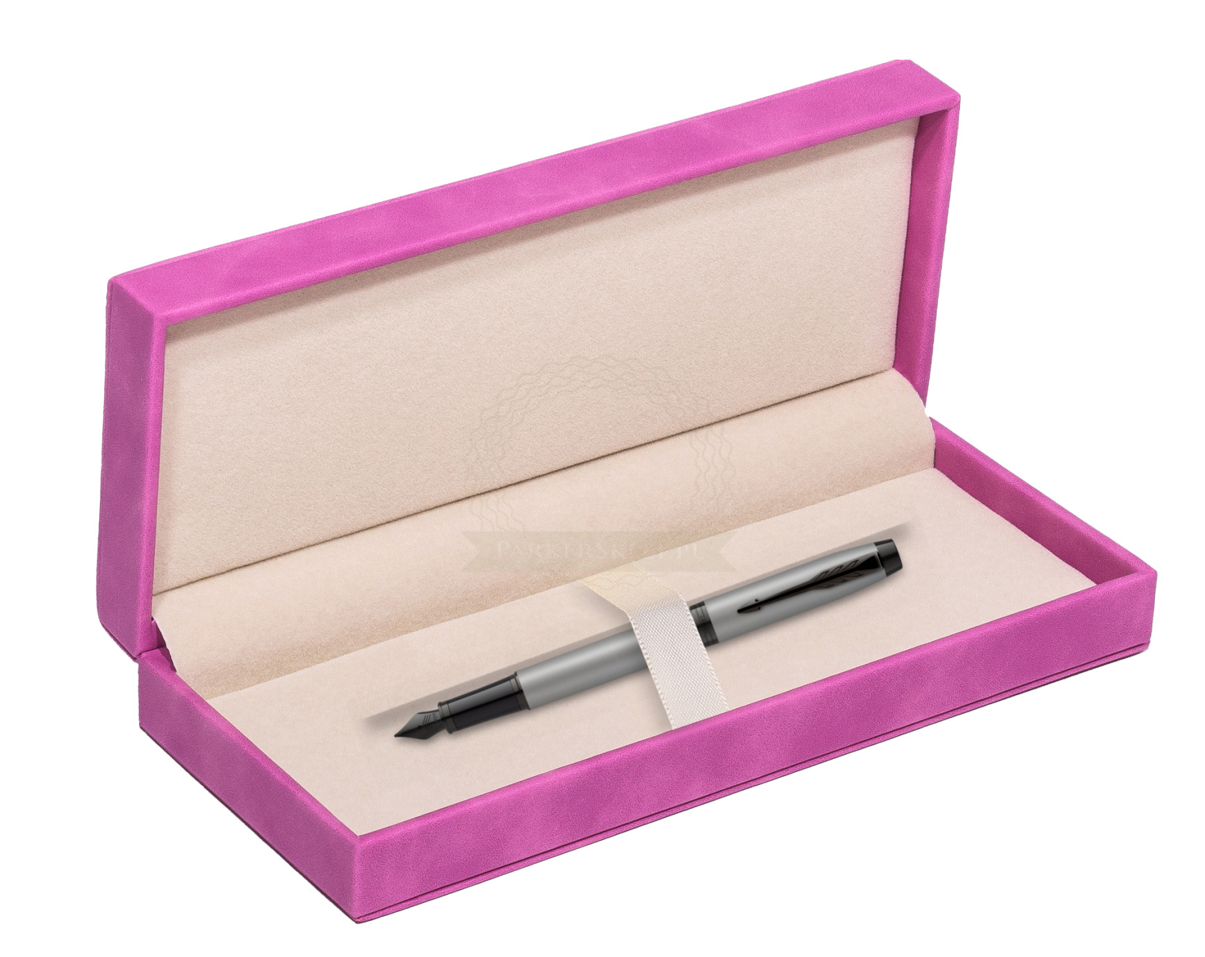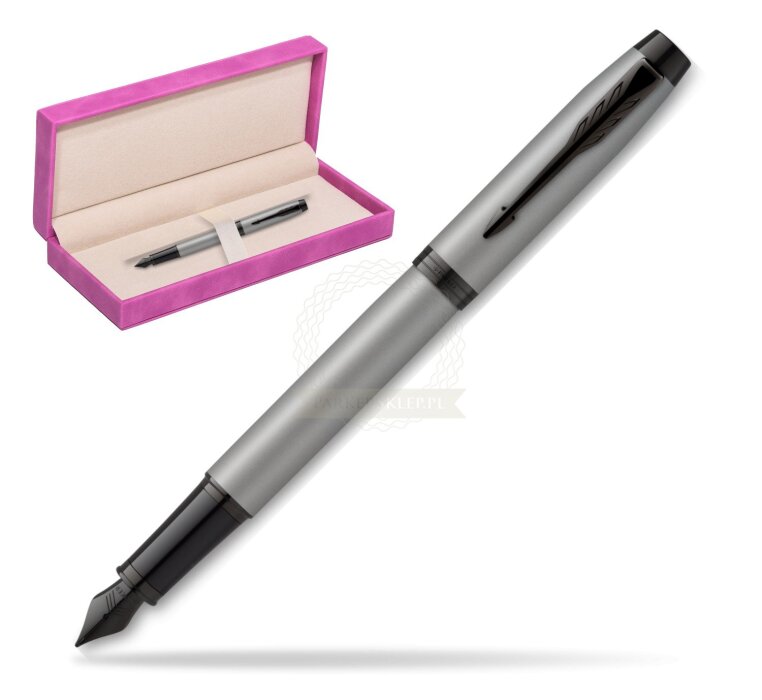 Pióro wieczne Parker IM Achromatic Grey w pudełku zamszowym fuksja (2127619_165FUCH)