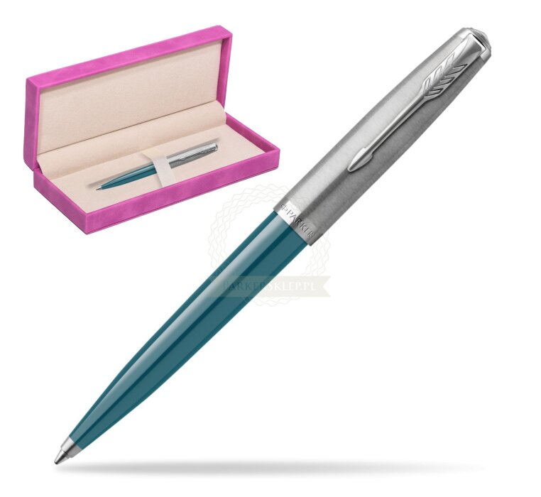 Długopis Parker 51 Teal Blue CT w pudełku zamszowym fuksja (2123508_165FUCH)