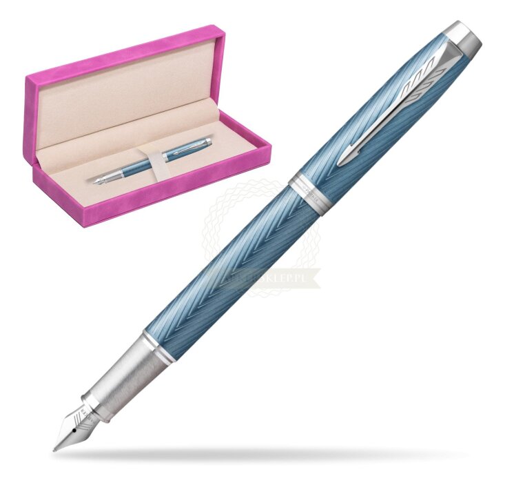 Pióro wieczne Parker IM Premium Blue Grey CT w pudełku zamszowym fuksja (2143651_165FUCH)