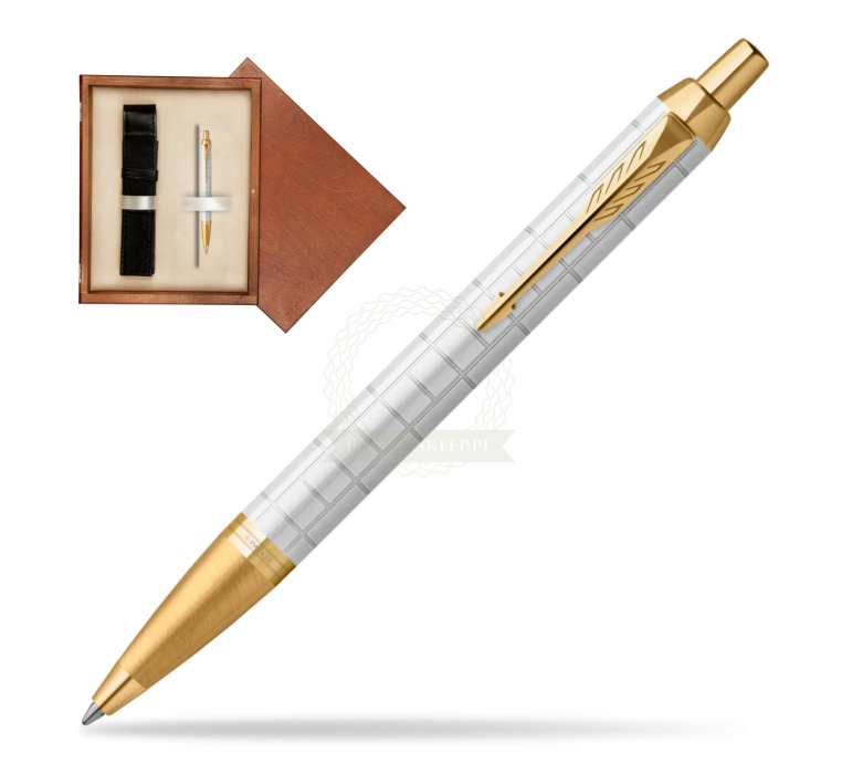 Długopis Parker IM Premium Pearl GT w pudełku drewnianym Mahoń Single Ecru (2143643_M1E)