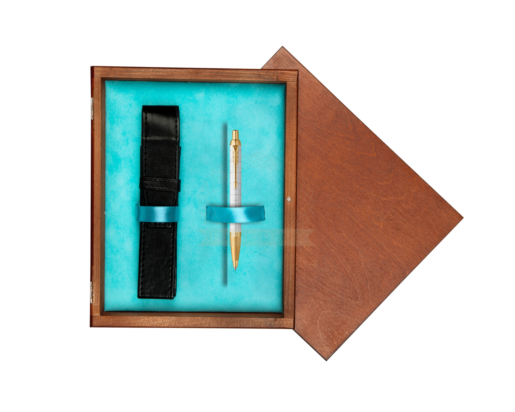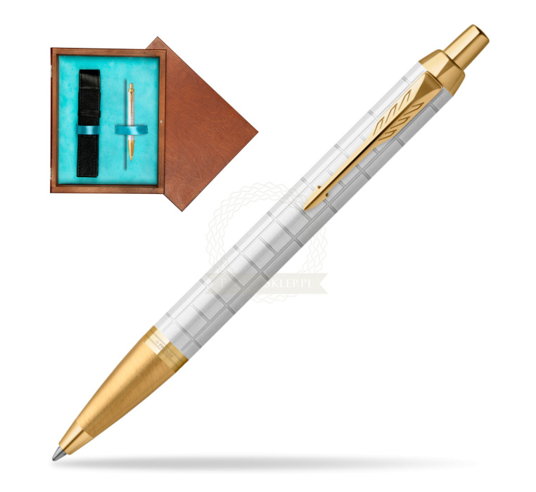 Długopis Parker IM Premium Pearl GT w pudełku drewnianym Mahoń Single Turkus (2143643_M1T)