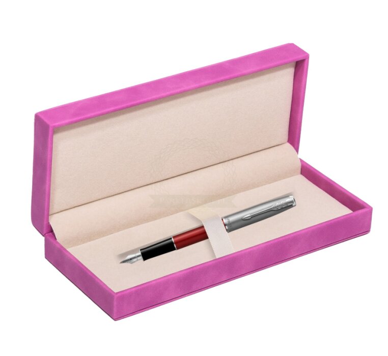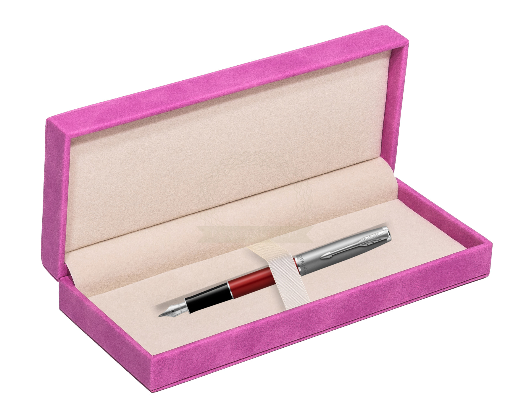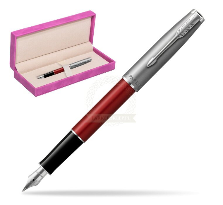 Pióro wieczne Parker Sonnet Sand Blasted Metal Red CT w pudełku zamszowym fuksja (2146736_165FUCH)