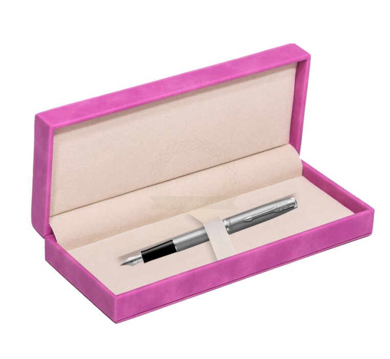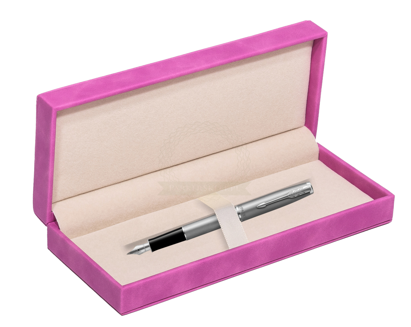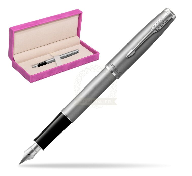 Pióro wieczne Parker Sonnet Sand Blasted Metal Stainless Steel w pudełku zamszowym fuksja (2146873_165FUCH)