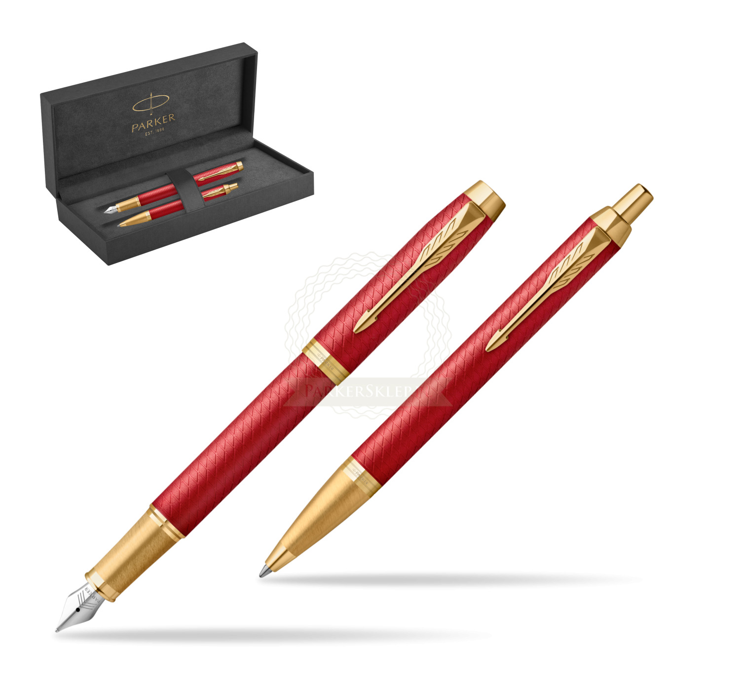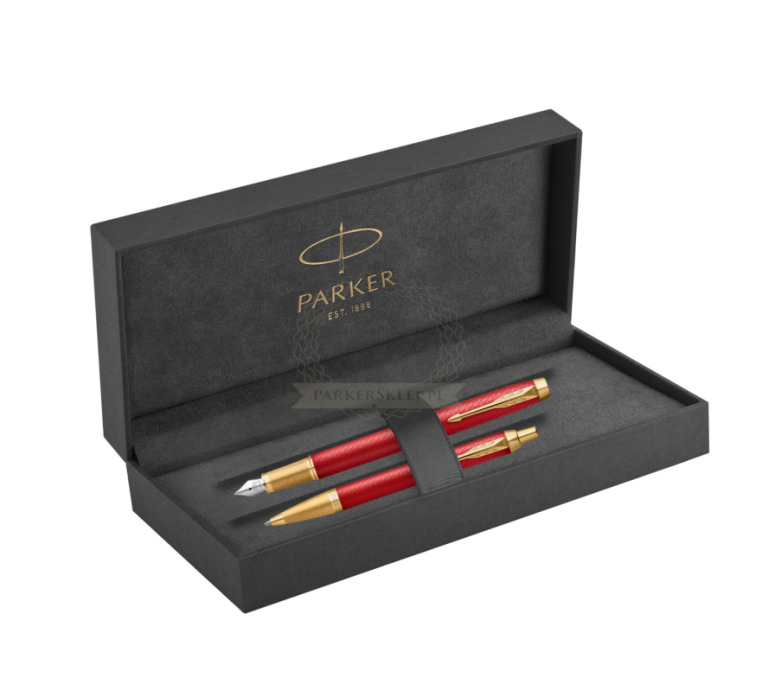 Zestaw Prezentowy Parker Pióro wieczne + Długopis IM Premium Red GT w oryginalnym pudełku Parker Prestige (2143650_2143644_2102172)