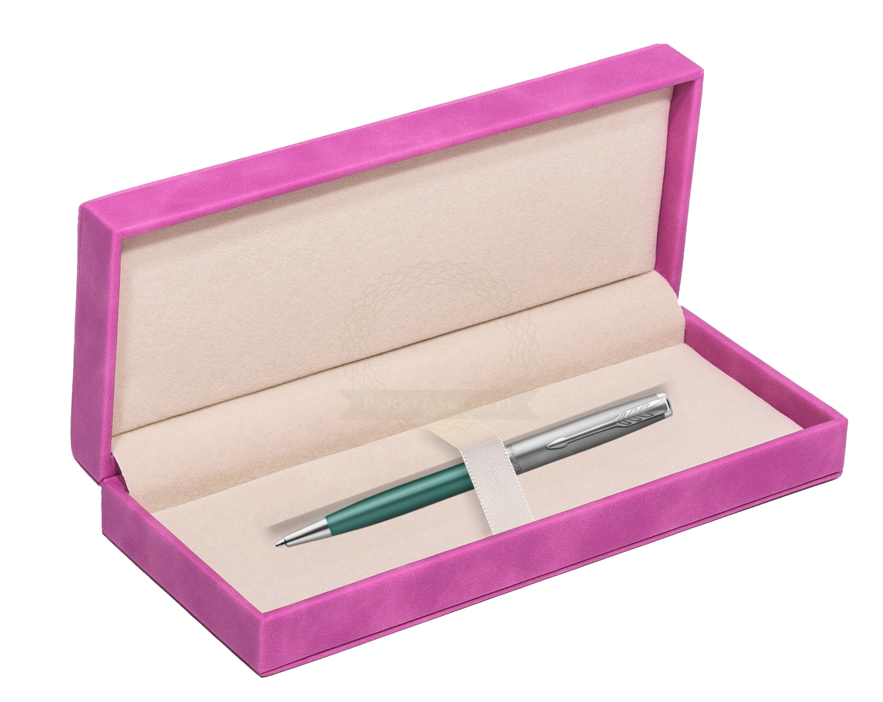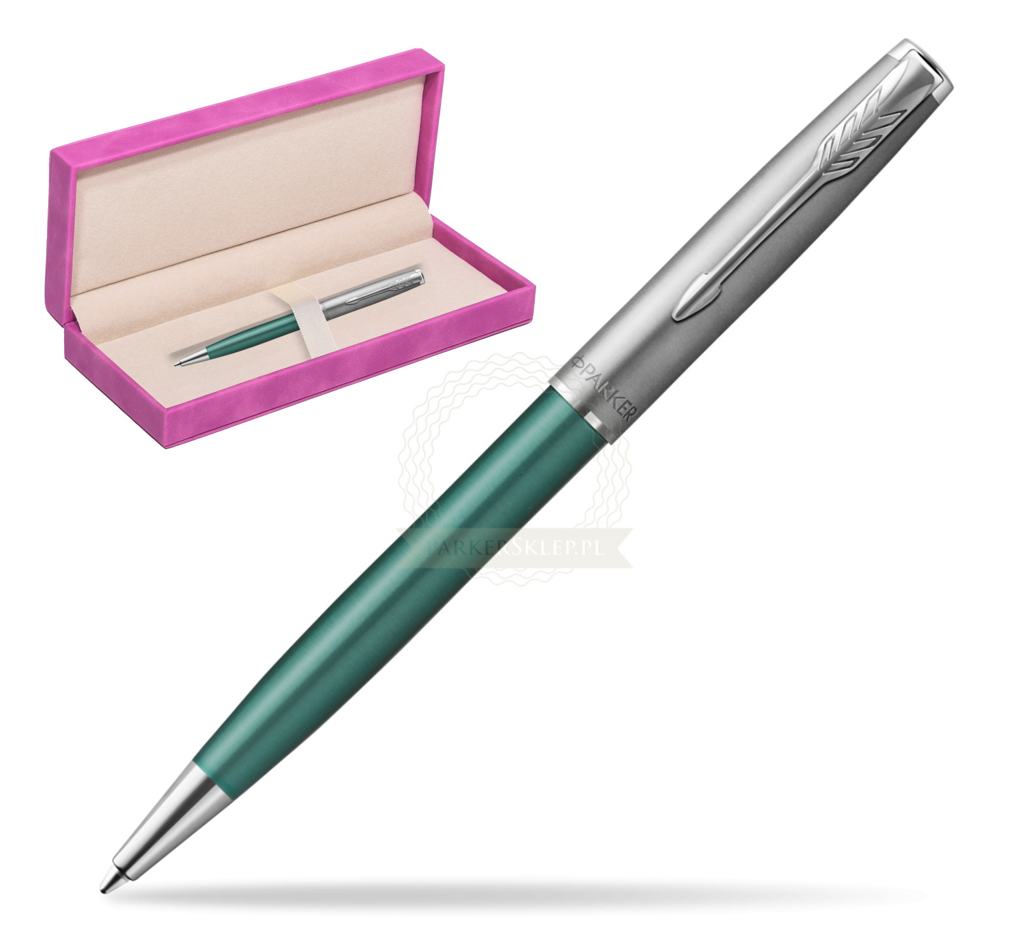 Długopis Parker Sonnet Sand Blasted Metal Green CT w pudełku zamszowym fuksja (2169365_165FUCH)