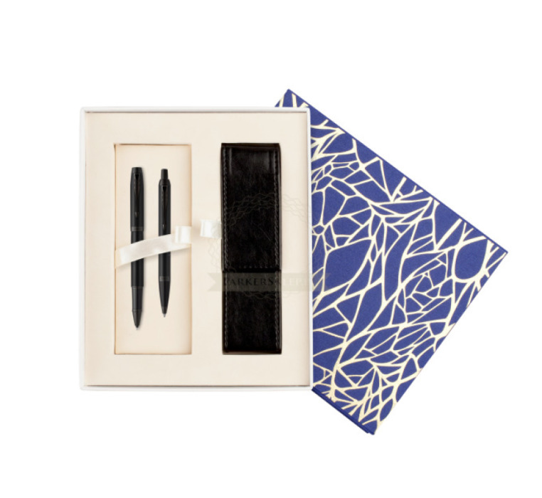 Proponujemy Państwu eleganckie pudełko prezentowe "hand made" w kolorze różu, przeznaczone na dwa produkty Parker. Powierzchnia zewnętrzna pudełka pokryta jest niezwykle delikatnym i miłym w dotyku lakierem typu "soft touch". Tłoczone wzorkiem na powierzchni. Pudełko zawiera stylowe etui wykonane z czarnej skórki. Wyściełane delikatnym atłasem w kolorze głębokiego granatu, posiada eleganckie, prezentowe tasiemki. Zamykane na magnes.
