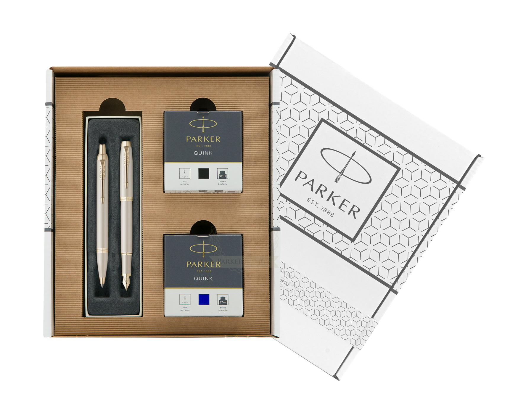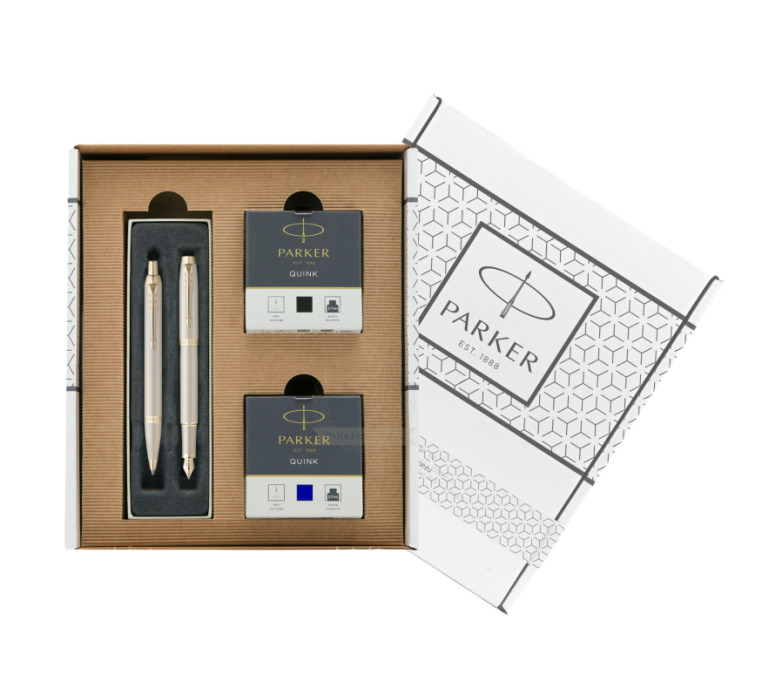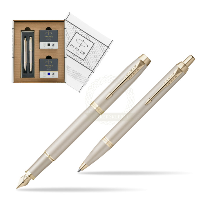 Zestaw Prezentowy Parker Pióro wieczne + Długopis IM PROFESSIONALS MONOCHROME CHAMPAGNE w białym pudełko Parker Eco (2172953_2172956_904040)