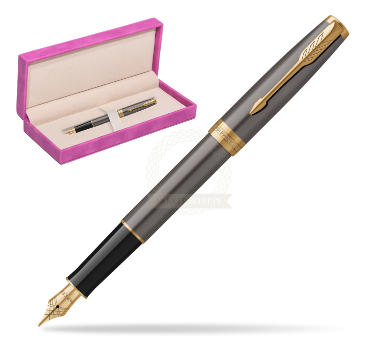 Pióro wieczne Parker SONNET Grey Core GT w pudełku zamszowym fuksja (2213680_165FUCH)