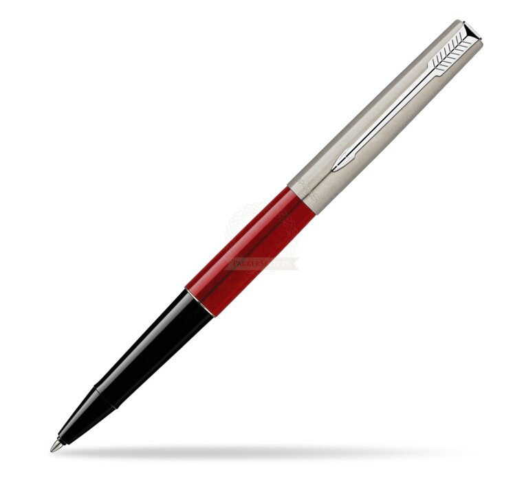 Pióro kulkowe Parker o klasycznym designie. Korpus w intensywnym czerwonym kolorze połączony został ze stalową skuwką i charakterystycznym klipsem w kształcie strzały. Solidne wykonanie i wygodny uchwyt zapewniają komfort pisania na co dzień. Korpus pióra wykonany z wysokiej jakości tworzywa sztucznego w kolorze czerwonym. Skuwka i klips ze stali nierdzewnej. Czarna plastikowa część przednia. Pióro kulkowe jest dostarczane z jednym wkładem w losowym kolorze niebieskim lub czarny