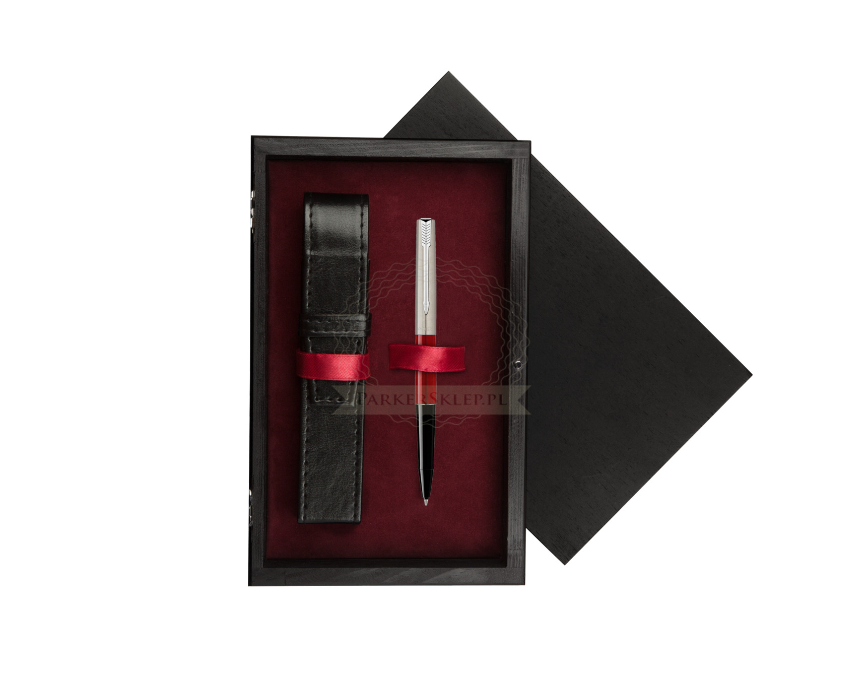Pióro kulkowe Parker Jotter Red CT w pudełku drewnianym Czerń Single Bordo (S0162360_C1B)