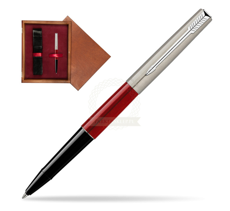 Pióro kulkowe Parker Jotter Red CT w pudełku drewnianym Czerń Single Bordo