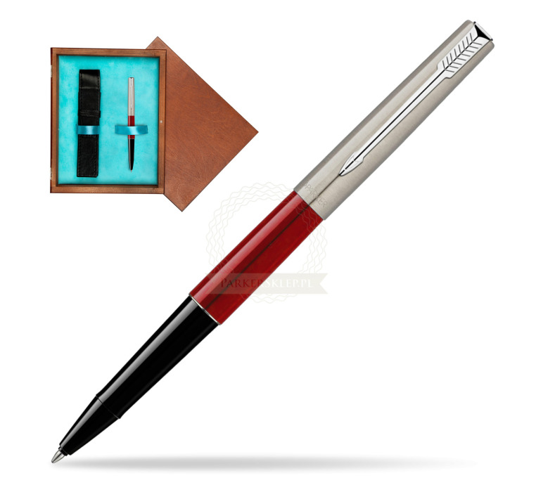 Pióro kulkowe Parker Jotter Red CT w pudełku drewnianym Mahoń Single Turkus (S0162360_M1T)